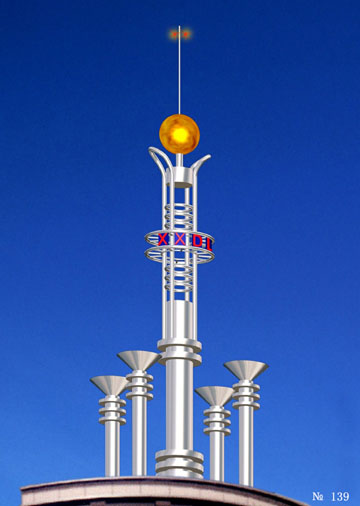 裝飾塔,又叫工藝塔或不銹鋼塔 (因?yàn)橥獍讳P鋼)特別適用與標(biāo)志性建筑物,各大辦公樓樓頂。美觀大方,新穎獨(dú)特,經(jīng)久耐用,裝飾效果好.