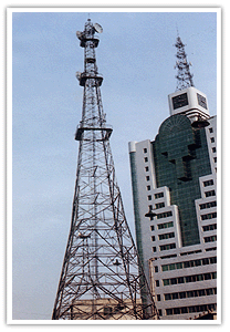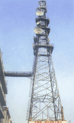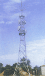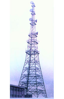 微波塔又稱為微波鐵塔、微波通信鐵塔,多建于地面、樓頂、山頂。微波塔承風(fēng)能力強(qiáng),塔架多采用角鋼材料輔以鋼板材料,也可全部采用鋼管材料組成,塔架各構(gòu)件之間采用螺栓連接,全部塔架構(gòu)件在加工完畢后經(jīng)過熱鍍鋅防腐處理。角鋼鐵塔由塔靴、塔身、避雷塔、避雷針、平臺、爬梯、天線支架、饋線架及避雷引下線等部件組成。 主要功能:支持電視信號發(fā)射.適用單位:各省市自治區(qū)廣播電視部門。